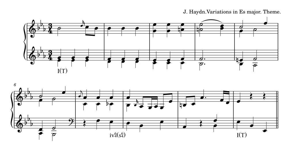 An example of the lowered sixth degree from the harmonic major scale can be found in bar 7 of the theme from Haydn’s Variations in E-flat major: