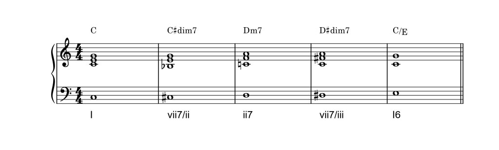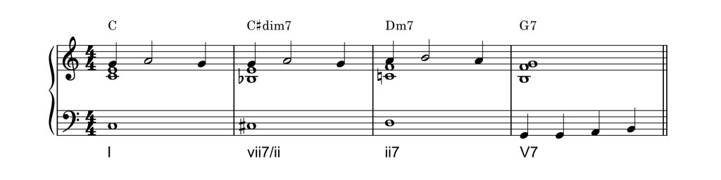 The basic jazz chord progressions below include the main seventh chords. You can try continuing these or modifying them.