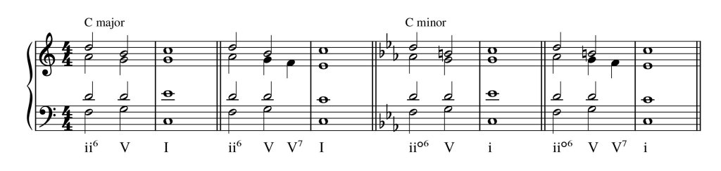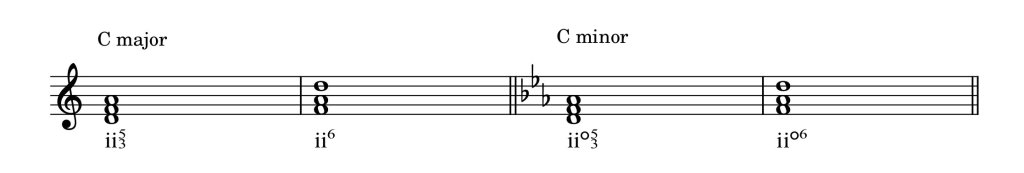 Doubling the third tone is most common for ii6 (refer to musical examples 2 and 3), while doubling the root or the fifth is used less frequently.