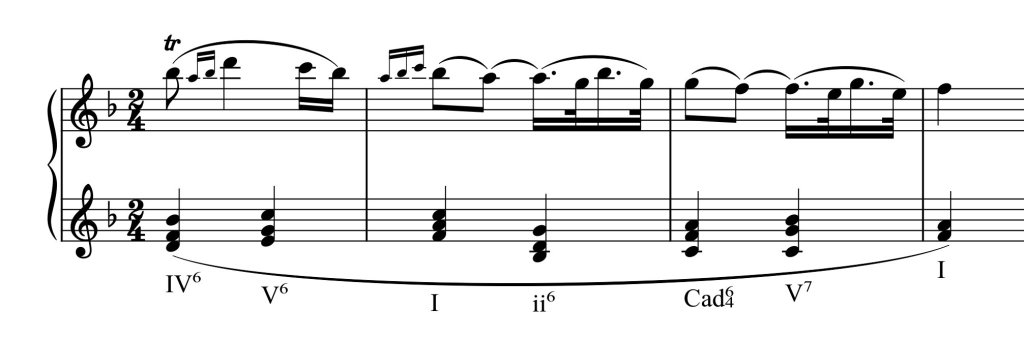 W. A. Mozart, Piano Sonata No. 2 in F major, K. 280, Adagio, mm. 21-22: