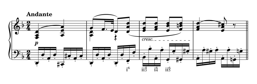 L. van Beethoven, Piano Sonata in D major, Op. 28, Andante, mm. 1-4: