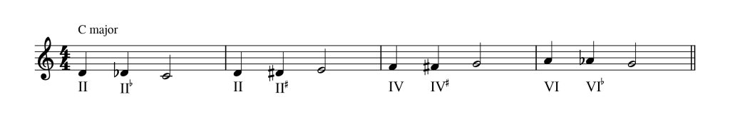 A semitonal alteration of the unstable diatonic degrees in the natural major scale: